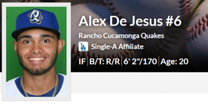 The Quake pitchers only allowed three singles, but also gave up 11 walks. They also had 13 Ks on the night. Offensively, Alex De Jesus was the hitting star with a double and 2 singles. Julio Carrion had 2 singles.