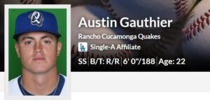 Hitting stars – Austin Gauthier 2 hits and 4 RBIs.  Luis Rodriguez 3 hits, including a double, concluding the 04-22-2022 MiLB summary.