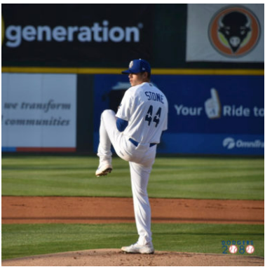 The pitching performance of the day has to belong to be Gavin Stone (pictured). In his first AA game since his promotion, Gavin pitched 5.0 scoreless innings. He allowed 5 hits, but no walks. He also struck out 8.