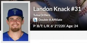 This was a HUGE game for starting Pitcher Landon Knack (Pictured). He completed 5.0 scoreless IP. He allowed 3 hits, but did not walk a batter while striking out 9. Knack threw 71 pitches/53 strikes.