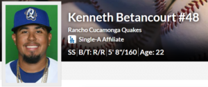 Kenneth Betancourt has been selected as the MiLB Player of the Week for the California League.