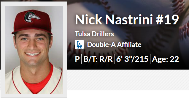 In his first AA start, Nick Nastrini flirted first with a perfecto and then with a no-no. He issued a walk for his first baserunner after 5.2 IP. With one out in the 7th, he gave up a HR for the first hit and loss of the shutout. He got through 6.2 IP with 97 pitches/57 strikes.
