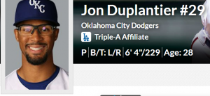 Jon Duplantier started for the Dodgers and had one of his best recent outings. He logged five scoreless innings giving up only two hits while walking three and striking out nine.