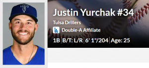 Justin Yurchak gets the nod with his 4 for 4 performance. That was one-half of the Drillers hits for the evening.