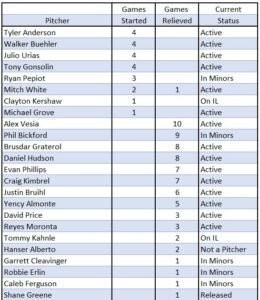 The same cannot be said about the pitching. The Dodgers have used 8 different starting pitchers and 17 different relievers.