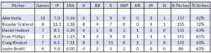 Justin Bruihl has been the most effective reliever considering ERA. But his 8 baserunners on in 5.0 IP is a 1.6 WHIP. He also has very rarely pitched in high leverage situations. Only two times has he entered in the 7th or 8th before last night, and neither outing was efficient. Two baserunners in 0.1 IP in those games. He was perfect in last night’s game entering the 7th.