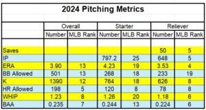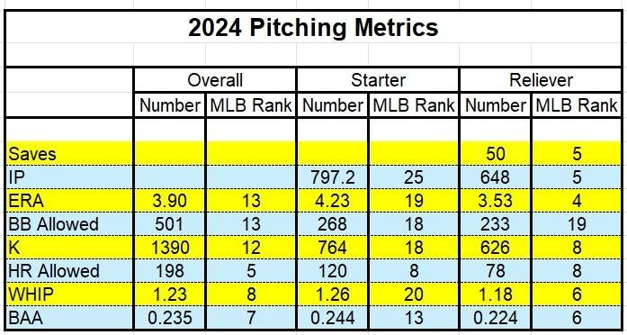 That is better than what Doc trotted out last year, but it certainly not going to be the top rotation in the playoffs. They are going to need to rely heavily on the bullpen. The bullpen has been the strength of the pitching for 2024.