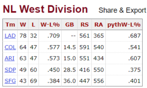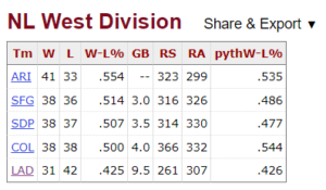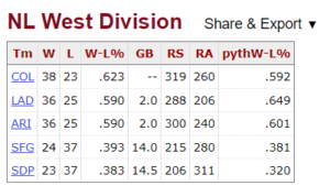 In 2017, they had another run. On June 7, 2017, the team was 35-25 and 2.0 games behind Colorado.