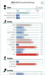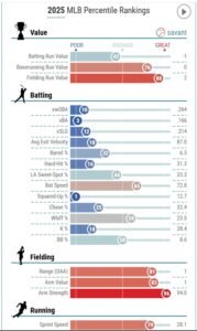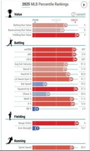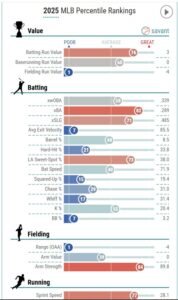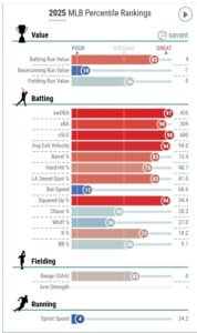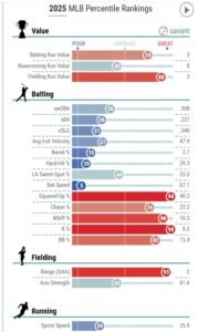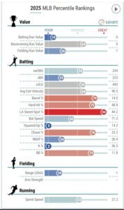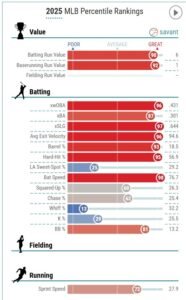 His 2025 Statcast page still shows an elite player. Compare that to his unworldly 2024 Statcast page.