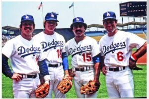 The 1977 team was a throwback to the old Boys of Summer. They bludgeoned you. Reggie Smith, Steve Garvey, Ron Cey and Dusty Baker all hit 30 or more homers. Rick Monday came on board in 77. The team was loaded with star power. They would lose to the Yankees in the series. But the team was on a solid footing to contend into the near future.