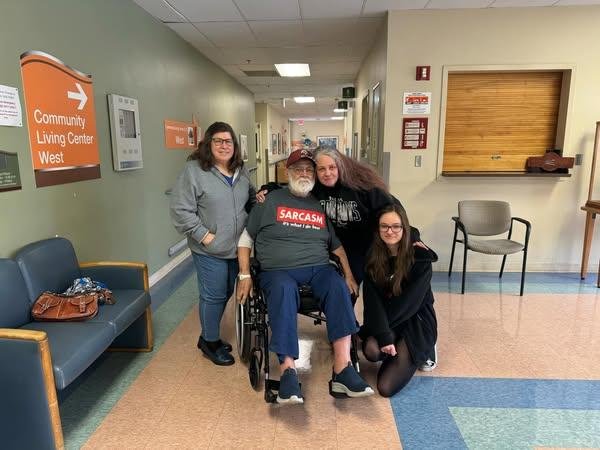Getting better, visits from the family always help, My sis, Donna, daughter Carrie, me and my granddaughter, Laycee.