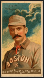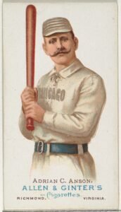 Another popular tobacco set was Goodwin’s Champions N 162 set. It featured advanced commercial coloring of the day and was quite striking. Only 8 baseball players are in the set. One of the more popular is King Kelly. These cards can fetch as much as 500 dollars. Another popular card was that of Adrian “Cap” Anson.