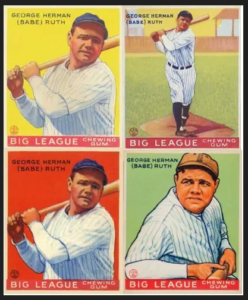 It also helped to have the stars of the day right there promoting them. The first major set was made by Goudey. They made Big League chewing gum. The 1933 set featured 240 cards. All wonderfully colored portraits of the players. This would also be Goudey’s biggest set.