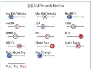 - Avg Exit Velo – 19 percentile