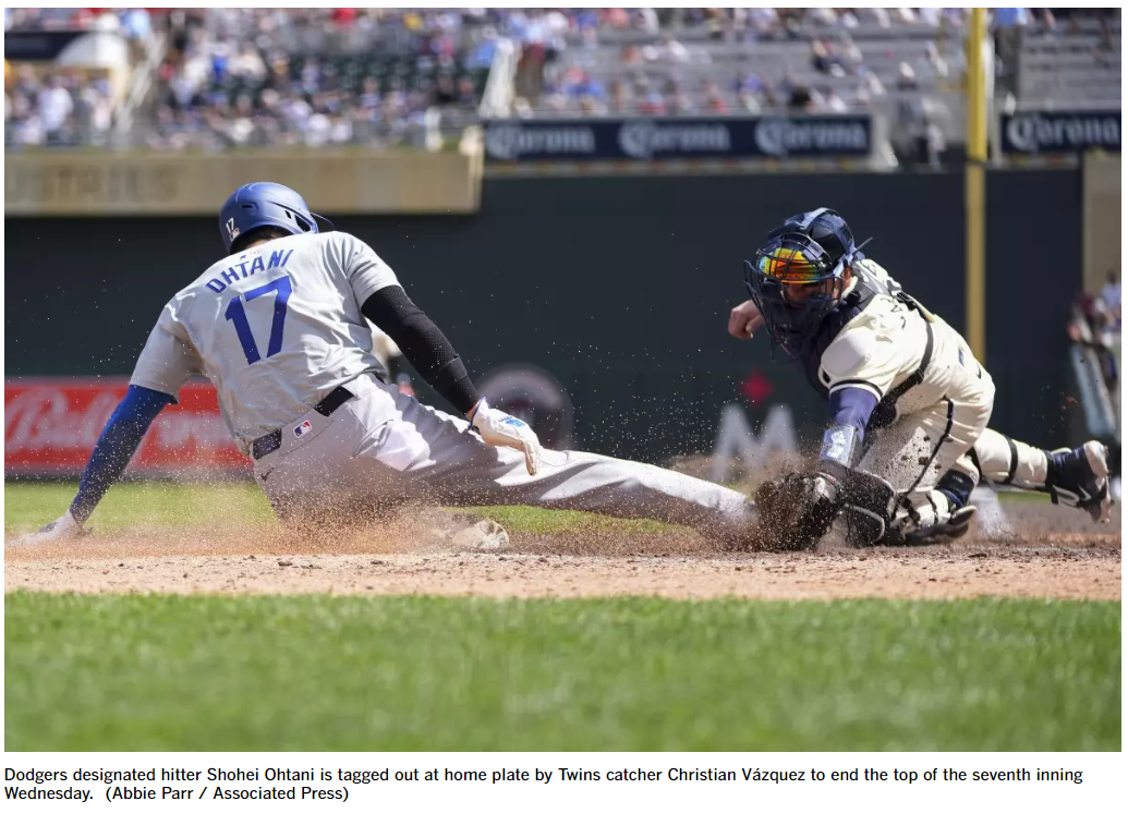 This is a game that the Dodgers did not lose, but the Twins won. And there is a difference. Once again, defense plays a big part in the Wednesday loss by the Dodgers. It is not always the errors that make the difference, but it is the outstanding defensive plays like a throw from C Christian Vázquez to Carlos Correa to 2nd to get James Outman’s SB attempt, or the throw from Alex Kiriloff, to Carlos Correa, to Christian Vázquez to get Shohei Ohtani at the plate. Good for the Twins. I like watching good defense.