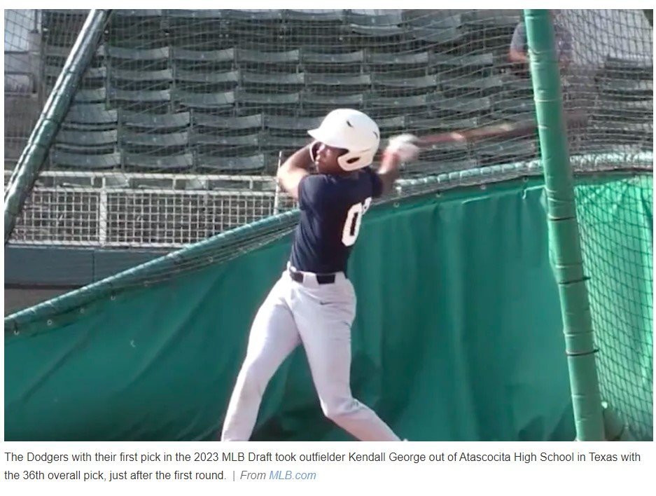 With the 36th pick of the 2023 MLB Draft, the Los Angeles Dodgers select Texas high school outfielder Kendall George. pic.twitter.com/Pd89ly8aMb