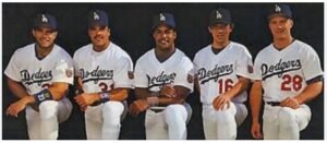 Last in line in 96 was outfielder Todd Hollandsworth. Hollandsworth had a solid rookie year with a .291 avg, 12 homers and 59 batted in. He never really lived up to the promise of that season. He was traded to the Rockies mid-season in 2000.