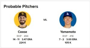 I expect the Dodger’s bats to be rusty from the 5-day layoff (and the longer layoffs for both Freeman and Rojas). So basically, Yamamoto must perform like the pitching ace he was advertised to be in Japan, ..and the Dodgers defense must back him with stellar play in the field, ..if the Dodgers are to have any chance of winning tonight’s game.
