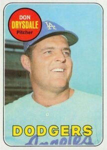 Drysdale would pitch in just 12 games in 1969 before he went down with a shoulder injury. He had been experiencing shoulder problems for a few years, and it had slowed him down. But in 1969, the rotator cuff in his arm finally tore enough for him to retire after just 12 games. He finished his career with a 209-166 record. His career ERA was 2.95 and he struck out 2486 batters. He finished with 154 hit batters. That card is the 1969 Topps Drysdale card.