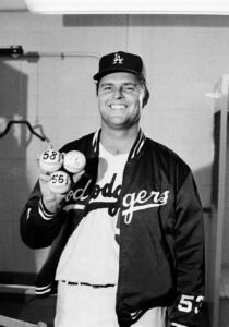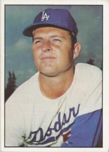 He had one child from his marriage to Ginger, a daughter, Kelly. On August 12th, 1984, Drysdale was elected to the Hall of Fame in his 10th year on the ballot. He got 78% of the vote. He went in with former teammate, Pee Wee Reese, Harmon Killebrew, Luis Aparicio and Rick Ferrell. Both his and Reese’s uniform numbers were retired soon afterwards by the Dodgers. On July 3rd, 1993, Drysdale died of a heart attack while in Montreal to broadcast the Dodgers-Expo series. A week earlier, the Dodgers had lost Roy Campanella, also to a heart attack. ” I think God needed a battery because he got the best heaven could have ever accepted.” said Tommy Lasorda.
