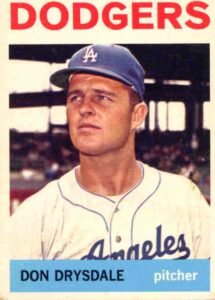 The next day, LA would lead going into the top of the 9th, only to lose 6-4 when the pitching failed them in the 9th inning. Drysdale and Duke Snider pleaded with Alston to use Don to close the game since Ed Roebuck, who had pitched 3 innings of relief, was totally gassed going into the 9th. Alston opted for Stan Williams. Williams would get only 1 out, and he walked 2, allowing all the inherited runners to score. Drysdale finished with a 25-9 record. He pitched 314.1 innings. He led the league in strikeouts with 232. For the first time in 4 years, he did not lead the league in hit batters. He won the Cy Young award and Maury Wills won the MVP.