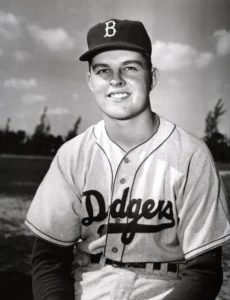 It wasn’t until his senior year at Van Nuys High that he tried his hand at pitching. Before that, he had primarily played second base. One of his classmates at Van Nuys was a kid named Robert Redford. In his debut year as a pitcher, he posted a 10-1 record. That convinced the Dodgers to sign him for a 4,000-dollar bonus. He was sent to Bakersfield of the California League. He was 17 years old. Branch Rickey, who was at the time scouting for the Pirates, wrote a very glowing scouting report on him.
