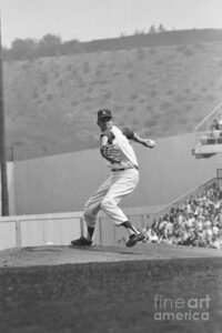 Koufax, who had been injured and missed close to two months, started game one and was hammered by the Giants in an 8-0 loss. Big D started game 2 at Dodger Stadium against Giants ace, Jack Sanford. Don had won 25 games during the season, but this day, he was not that sharp. He allowed 7 hits and 5 runs, 3 of which were earned. He struck out 4 but he also walked 4 in his 5.1 innings of work. LA though came back to win the game after being down 5-0, they scored 7 runs in the sixth to take the lead. SF tied the game in the top of the 8th before LA walked it off in the bottom of the 9th. The run scored on a sac-fly by Tommy Davis off of Mike McCormick.