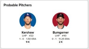 Clayton Kershaw faces Madison Bumgarner on Friday night in the 2nd game of the series.