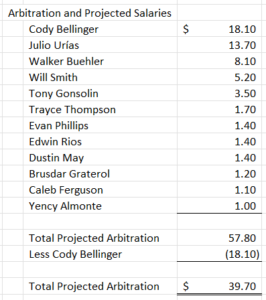 The below arbitration projected salaries were forecast by Matt Swartz of MLBTradeRumors.