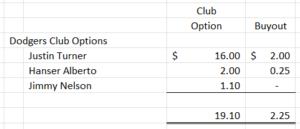 The Dodgers have four remaining players with 2023 club options: Justin Turner, Danny Duffy, Hanser Alberto, and Jimmie Nelson. The chart below does not include Danny Duffy as his club option is for $7MM with $0 buyout. One can never say never, but it is truly unlikely that the club option will be exercised at $7.0MM. AF/BG may want to consider Duffy for 2023, but not at $7.0MM. He could be a consideration for the David Price multi inning role. I considered him a free agent.