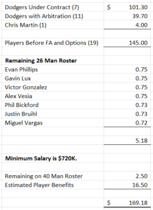 One person not included in the above is Chris Martin. Some sites say he is still arbitration eligible…Cots, Baseball Reference, and Spotrac individual page. Some sites say he is a free agent…Spotrac 2023 Dodgers Free Agent list, and MLBTradeRumors free agent list. He has 4.133 ML service, so he really is not eligible to be a free agent. I am going with 3rd year arbitration. What he will get was not speculated by MLBTradeRumors as they believe he is a free agent. He made $2.5MM in 2022, so I am going with $4.0MM.