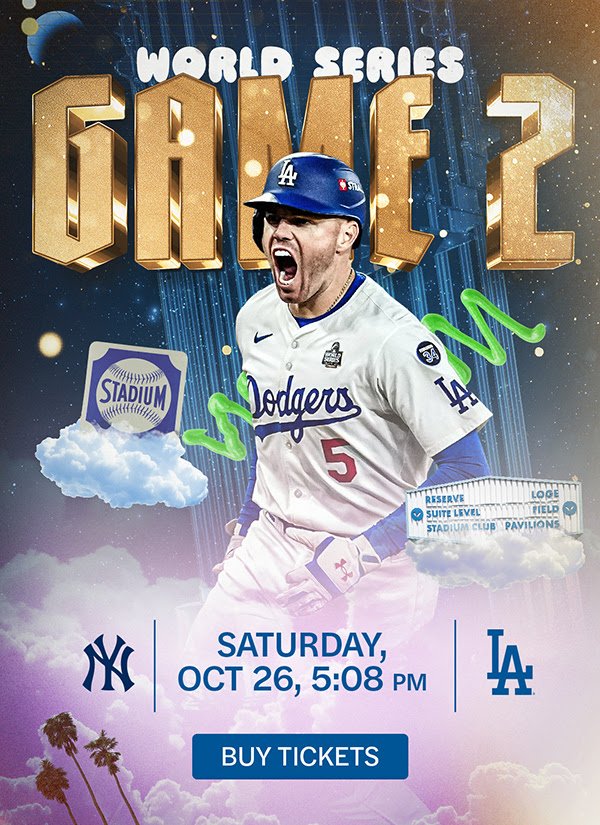 Carlos Rodon vs Yoshi Yamamoto: Dodgers pulled out the lineup they use against lefty starters. Rojas at SS, Kike at second, Edman in CF. Shohei, Freddie and Muncy the LH bats. After last night’s heroics by Freeman, the Stadium is jumping.  Ice Cube really got the crowd going.