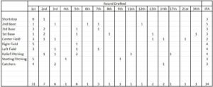 66 of the top position players were actually drafted while 34 were International Free Agents.  Of the 66 players drafted, 31 were in the 1st round, 7 were in the 2nd round, and 6 were 3rd rounders.