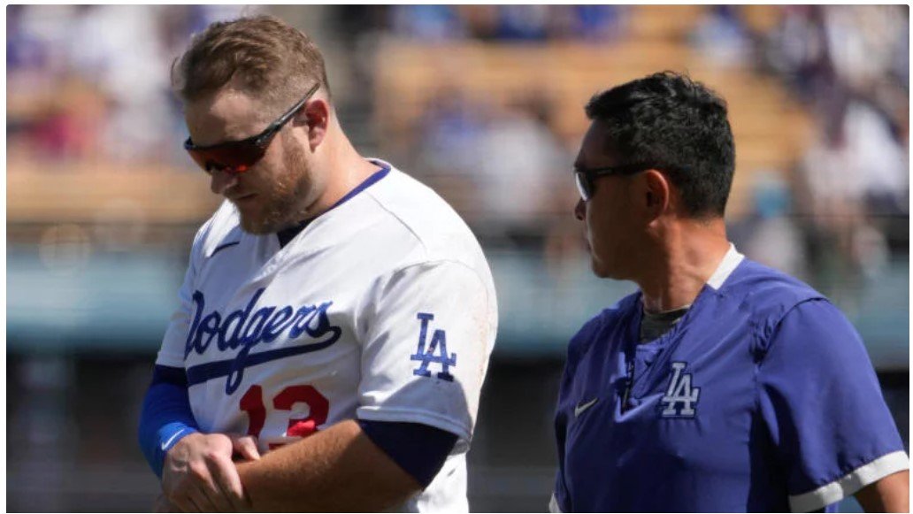 Belli hurt his shoulder with a celebratory Kike’ Hernandez after a Belli HR in the NLCS Game 7.