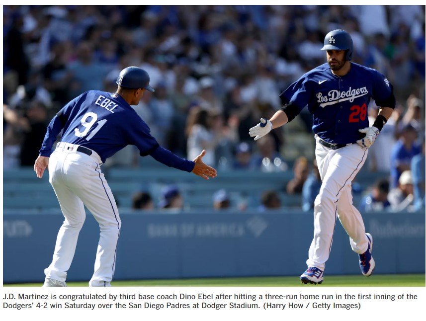 The big blow was a JD Martinez 3-run HR off Joe Musgrove in the 1st inning with 2 out. Will Smith had a run scoring single after a Freddie Freeman double.