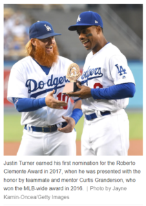 Turner was honored for his philanthropic work in and around Los Angeles during his nine years with the Dodgers. That includes :