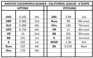 While the offense has not been the most prolific, the pitchers have carved out a nice niche in the California League.
