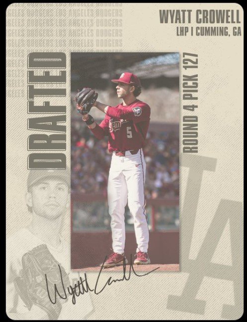 Probably based on his final 7 weeks in his sophomore year and his five games in 2023, LAD selected Crowell in the 4th round (127th overall) in the 2023 draft, and signed for a below slot bonus of $516,800. He was assigned to the ACL Dodgers, but obviously did not pitch during his TJ surgery recovery.