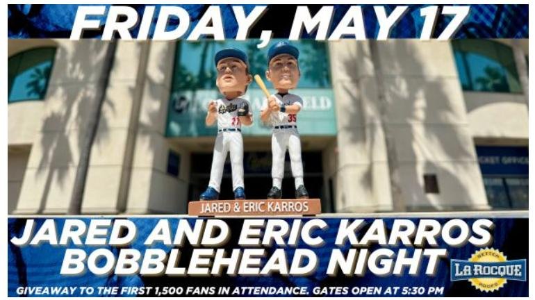 For those that live close enough to Rancho Cucamonga to make a game, the Quakes have a Jared and Eric Karros Bobblehead Night Giveaway next Friday (May 17).