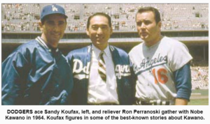 Working in the bowels of the Colosseum and Dodger Stadium, Nobe Kawano played a significant part in the evolution of Sandy Koufax as the legend he became.  In 1960, Koufax suffered through an uncharacteristic 8-13 season. Frustrated, Koufax tossed his gear into the garbage, vowing to return to college to study architecture.