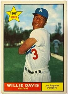 1961 was not a banner year for the Dodgers as a team. They did improve over 1960 and won 89 games to finish second in the NL to the Reds. They were getting younger too. Carl Furillo was gone, replaced by slugging Frank Howard. Willie took over as the primary CF for Duke Snider. Besides the 21-year-old Willie Davis, the Dodgers had Ron Fairly, 22, Tommy Davis, 22, Howard was 24, and many of the younger players in their system who got looks that year were below 25 years old.