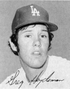 In 1974, the Dodgers won their division, beat the Pirates 3-1 in the LCS and went on to lose the World Series 4-1 to the Oakland A’s. They traded for Jimmy Wynn from Houston, moved Garvey to first base permanently, thus creating an infield that would play together for 8.5 years. They moved Buckner to the outfield. Steve Yeager, a better defensive catcher than Ferguson took over behind the plate with Fergie becoming a utility guy. John Hale, photo above, a 20-year-old outfielder, came up late in the year and went 4-4 with a double and 2 RBIs. On the pitching side, Rex Hudson and Rick Rhoden made their debuts. For Hudson, his one game experience in the majors was forgettable. 2 innings, 6 hits, 5 ER and 2 homers allowed for a 27.50 ERA. Rhoden would pitch in the majors for 16 years.