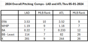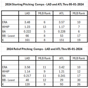 On the road trip, no runs against was > 4.  Only two games reached 4, and one of those was the ten inning game when the Dbacks scored 2 in the 10th off Nabil Crismatt.  The other game the Dodgers lost on the trip was a bullpen game started by Michael Grove.  But that was more of a great game by Blue Jays pitcher, Kevin Gausman.   BTW, maybe it is time to stop trying to push Grove to more than 1.0 inning.  He seems automatic for 1.0 IP, but loses it after that.