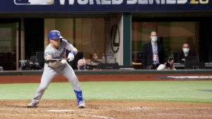 He was Grandal’s caddy again in 2018. His BA dropped to .205. He appeared in 5 of the 7 playoff games against the Brewers and made an appearance in all 5 World Series games against Boston. In 2019 his BA was .204, but he hit 5 homers and drove in 25. He was now Will Smith’s caddy. He did not appear in any of the playoff games with the Nats. In 2020, Barnes hit .244 in 29 games. He caught one game in the win over Milwaukee, going 2-3. He caught one game in the win over the Padres going 2-2. He was in three games against the Braves going 2-7. In the World Series, He played in 5 games, he had 2 hits, and both were important. He had a clutch sac bunt in game three and then hit a 2-run homer. In game six, he knocked Blake Snell out of the game with a single. He then scored on Bett’s double.