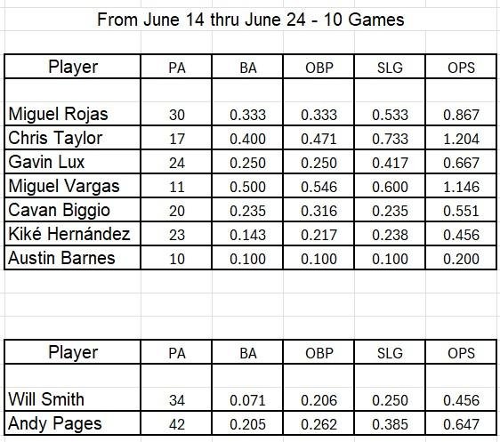 There has been a lot of angst exhibited towards the bottom of the lineup, and admittedly rightly so. But just like a lot of baseball, it can be cyclical, and lately the bottom of the order has been excellent. I did not hear the exact stat of how many games total, but it was reported that the LAD bottom three in the order have MLB’s top OPS over the last XXXX games.