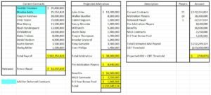 Now what? Are the Dodgers really trying to stay under the CBT threshold. Depending on arbitration outcomes, they could be over the threshold now. Two different publications have calculated Freddie Freeman’s deferred portion of his contract differently. Roster Resource calculates Freeman’s AAV to be $24.7MM, while Spotrac calculates his AAV to be $25.8MM. What is the correct calculation? One of the largest estimated numbers is, Estimated salaries for players not yet eligible for arbitration and other players with non-guaranteed contracts. Spotrac and Roster Resource calculate the amount to be $8.64MM, while Cots estimates it to be $5.1MM. What is the actual amount? That will not be known until after the season. Arbitration hearings are coming up, so we will know what the salaries will be for those ten players in short order. Those could push the Dodgers over the $233MM payroll threshold.