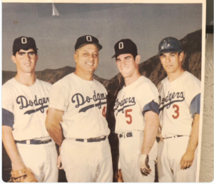 Bill Buckner, Tom Lasorda, Steve Garvey, Bobby Valentine – Lasorda with 3 of the prized 1968 LAD Draft