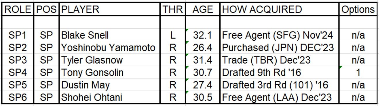 I prefer to focus on the LAD training that actually gave the Dodgers all the options. My six-man rotation to start the season: