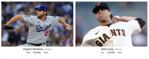 Clayton Kershaw vs LHP Sam Long on Saturday which is the Fox Game of the Week,