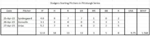 Here is a table of the Pirates and Dodgers offense in the series, with individual LAD offensive stats.